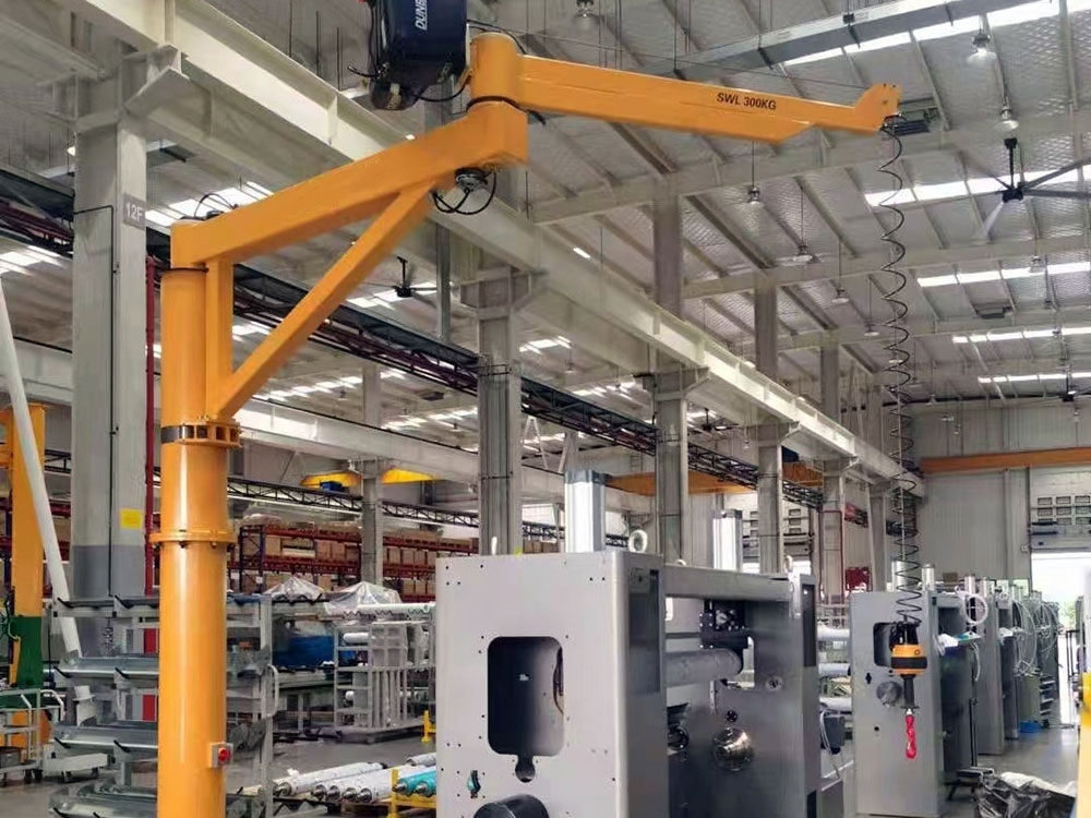 移动式悬臂吊更具灵活机动、适应性广等特点,是自动生产线上必备的单独应急吊装设备,有了它能确保生产线畅通无阻。
