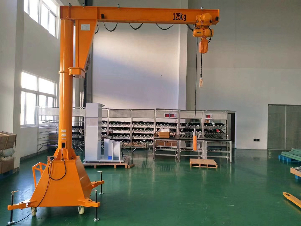 移动式悬臂吊更具灵活机动、适应性广等特点,是自动生产线上必备的单独应急吊装设备,有了它能确保生产线畅通无阻。